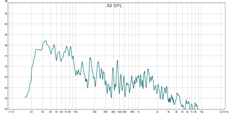 Kon-Tiki is a film with a good sound track utilizing the whole frequency spectrum, observe that the curve is a slightly tilted line extending all the way down to the very lowest frequencies: