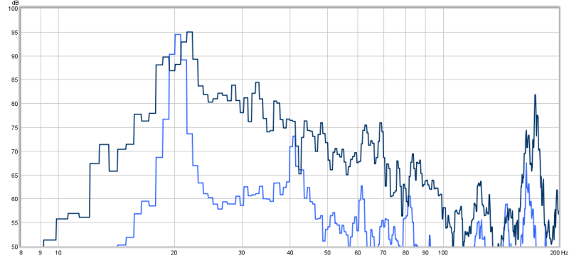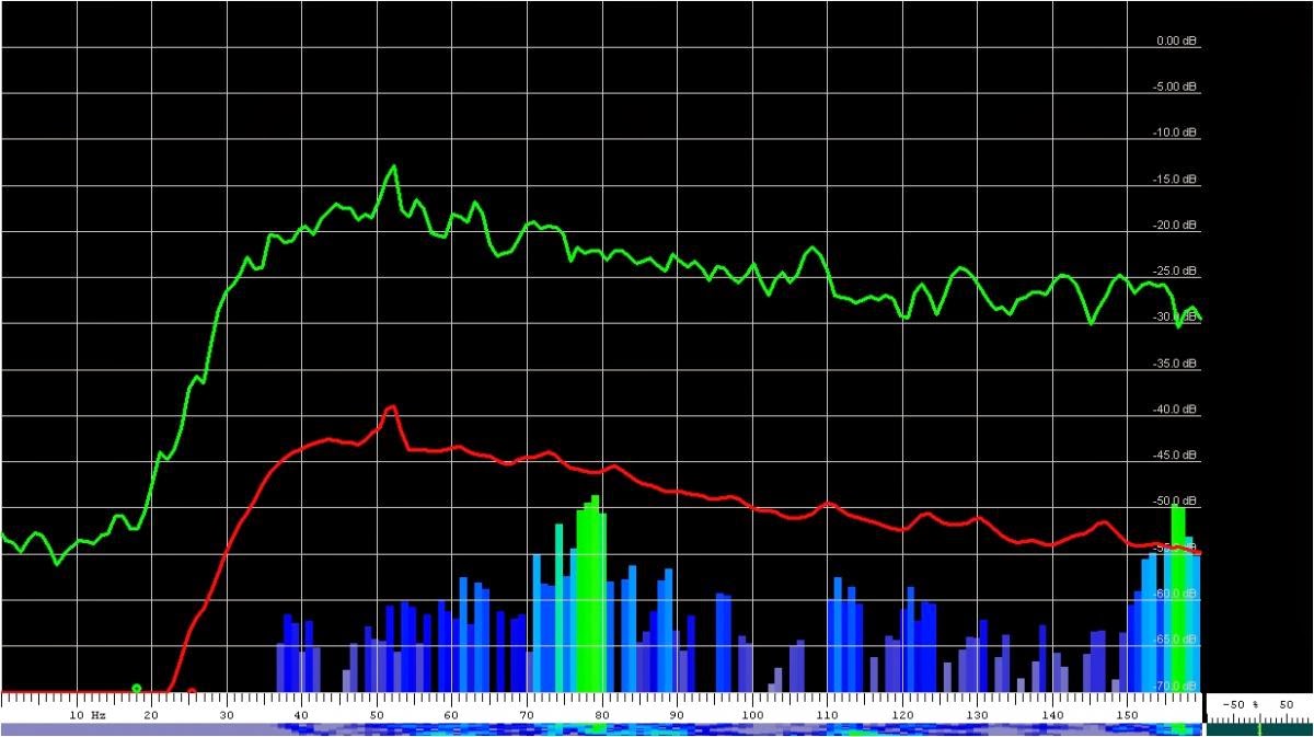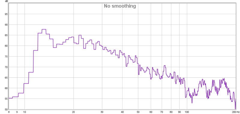 The spectrum reveals why this effect is so good – there is significant content at the very lowest frequencies, peaking around 13Hz.