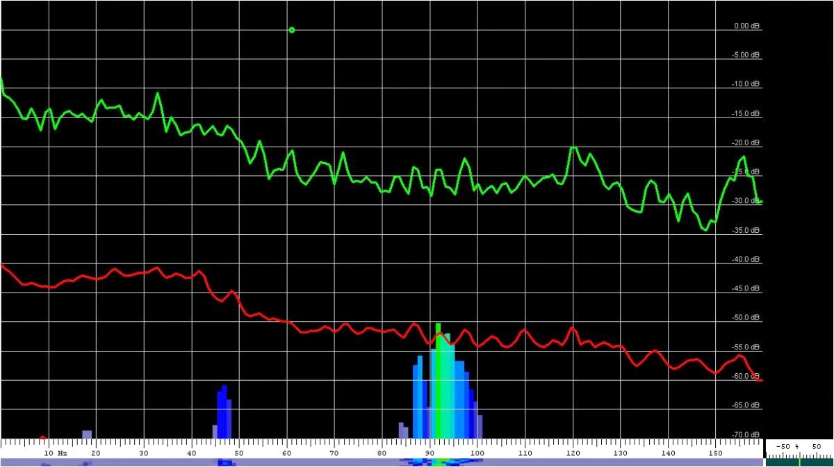 This film has a droning, constant tone around 20Hz, as can be seen in the curve.